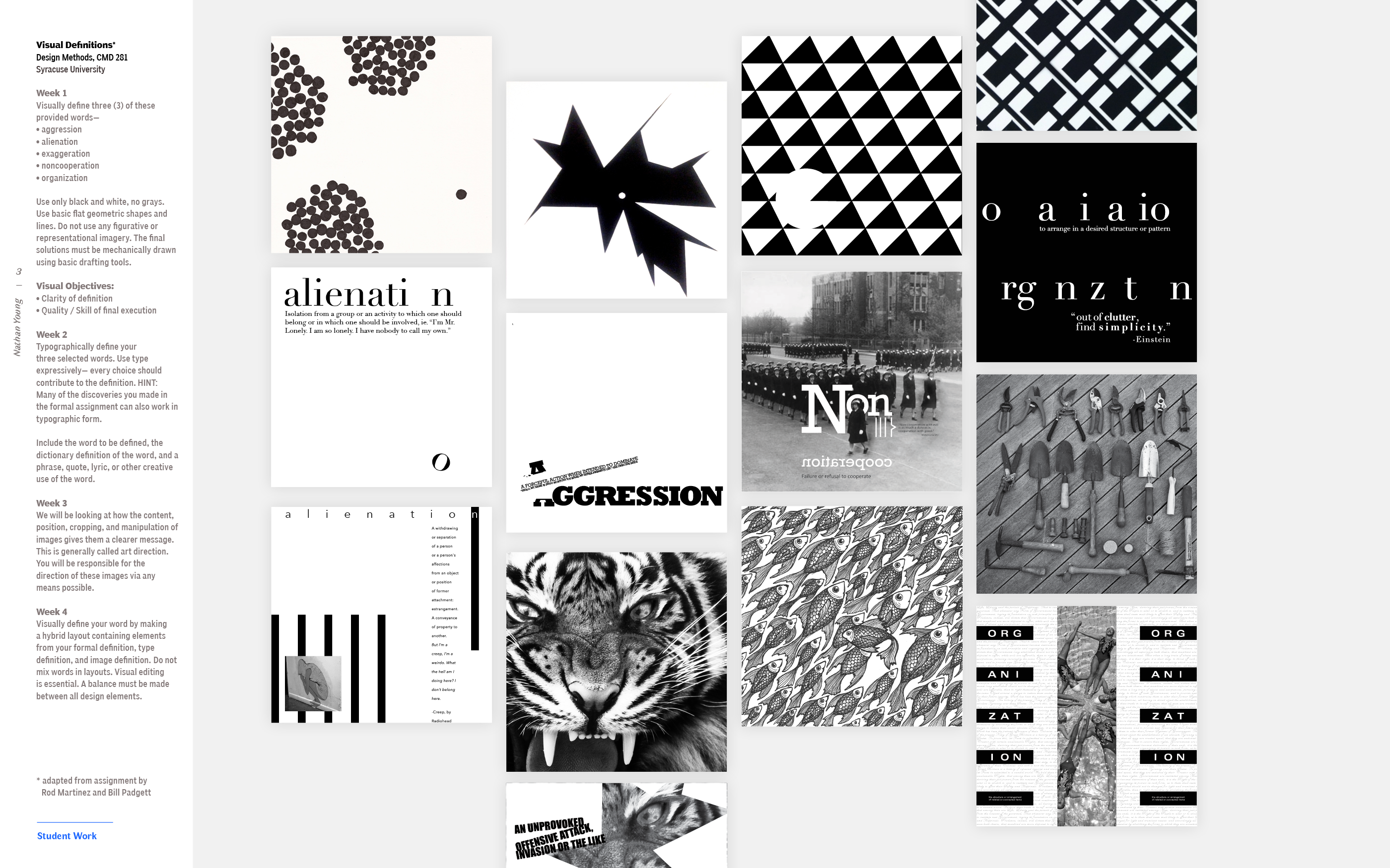 Typographically define your three selected words. Use type expressively— every choice should contribute to the definition. HINT: Many of the discoveries you made in the formal assignment can also work in typographic form.